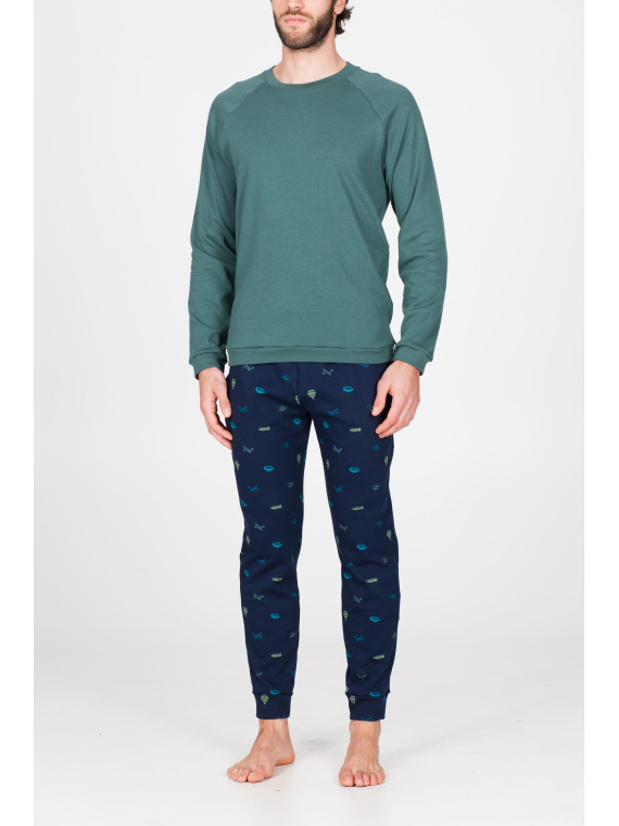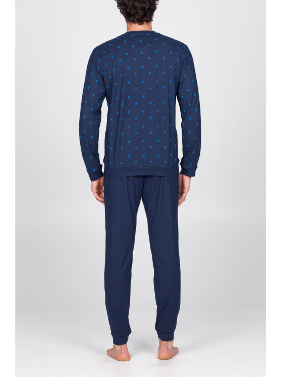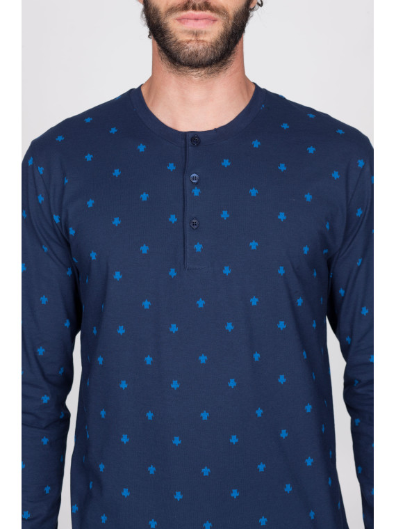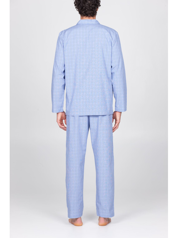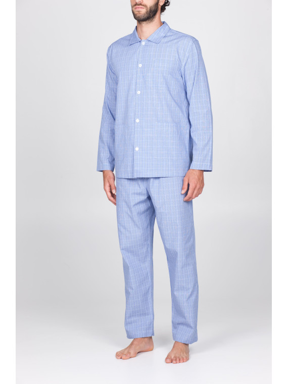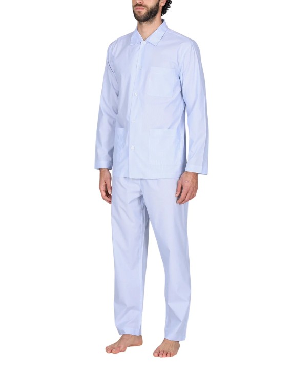 Julipet uomo JAL270 GORO Pigiama cardigan in pregiato popeline riga azzurra,