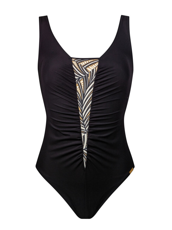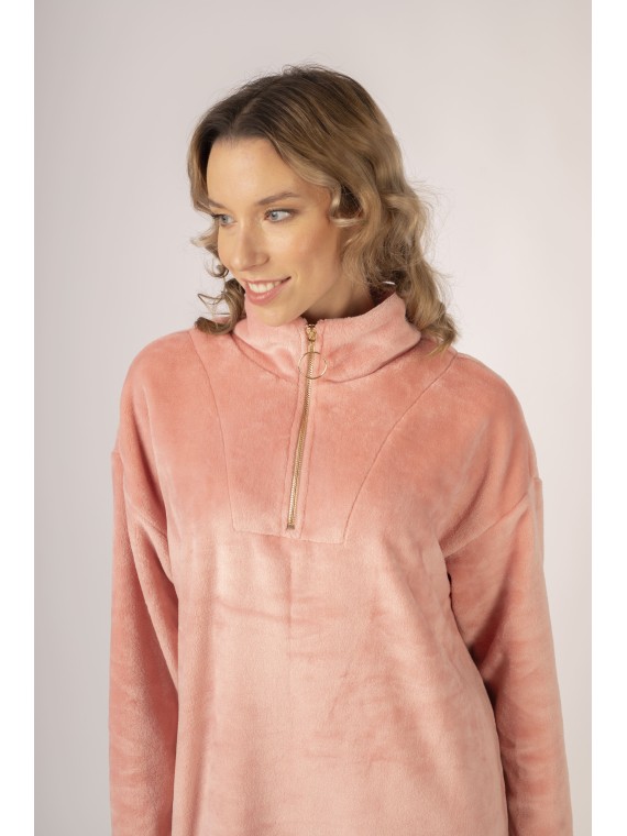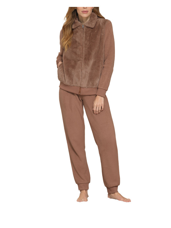 Casacca lunga in tinta unita con zip Pantaloni in fantasia con...