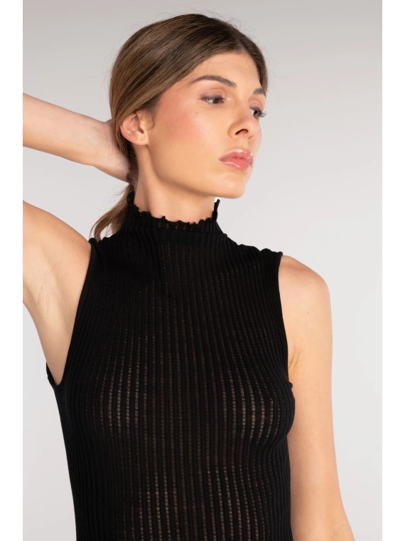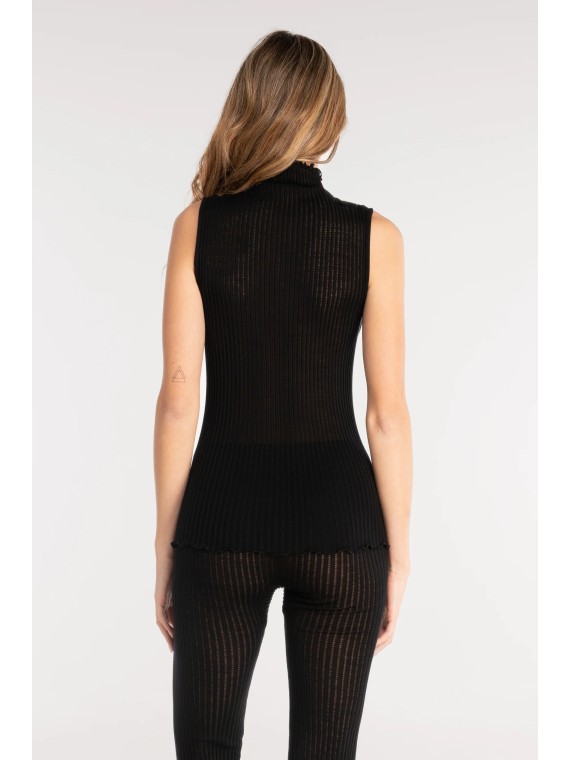 70%Lana vergine merino 30%Seta Top senza maniche con scollo a...