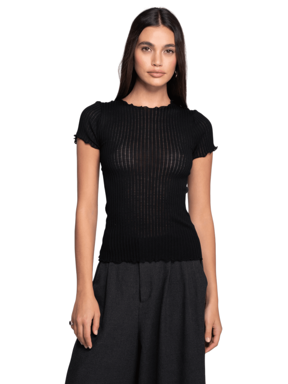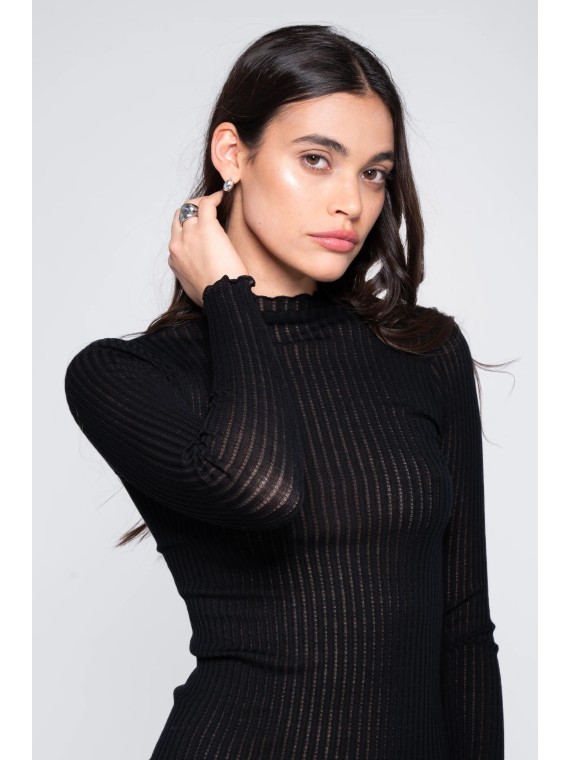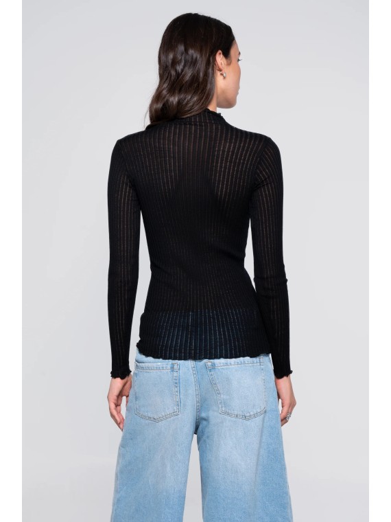 70%Lana vergine merino 30%Seta Maniche corte tessuto ajourè...