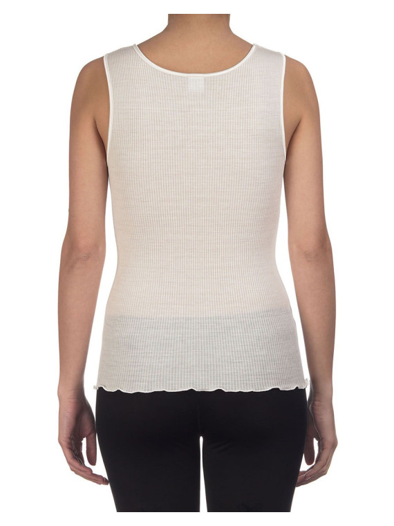 70%Lana vergine merino 30%Seta Top senza maniche con scollo a...