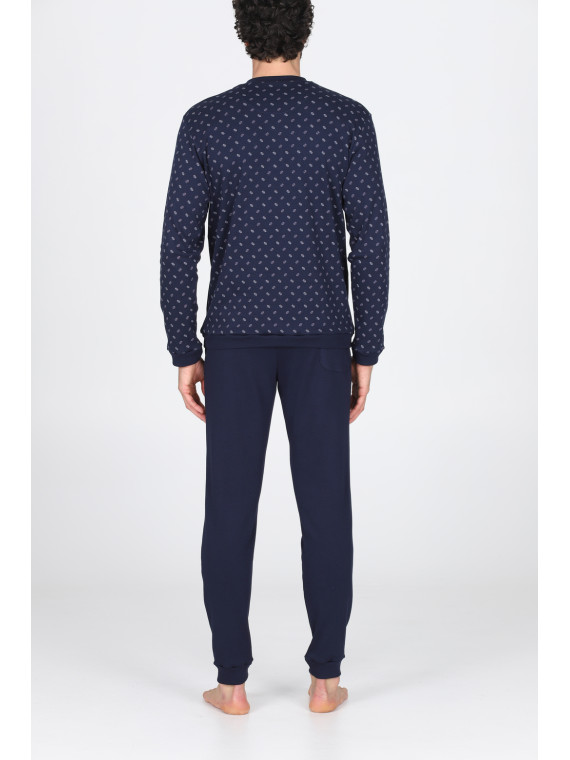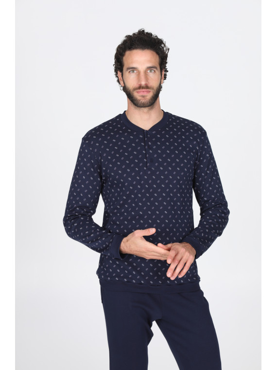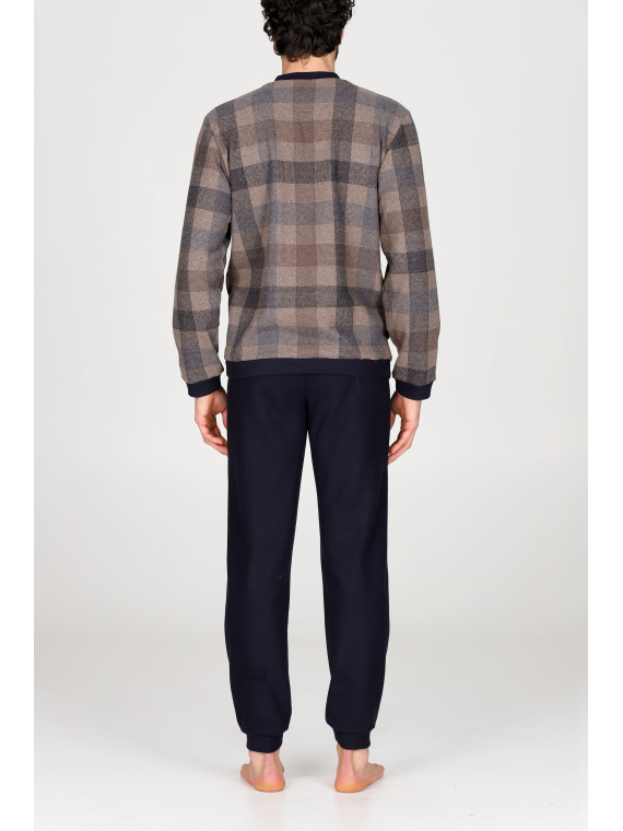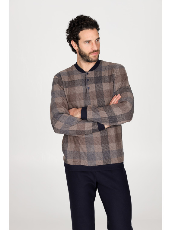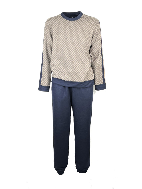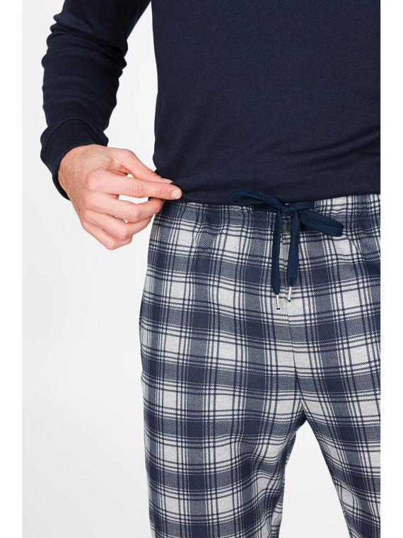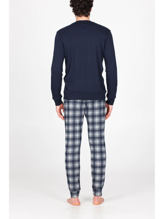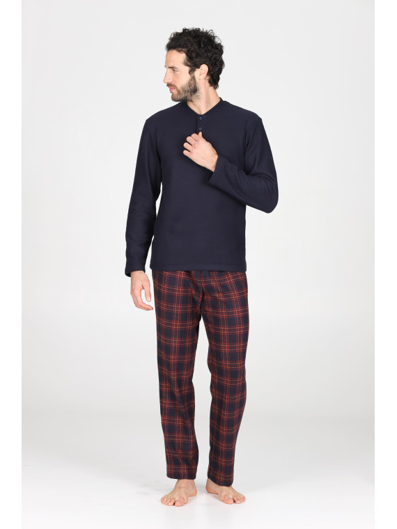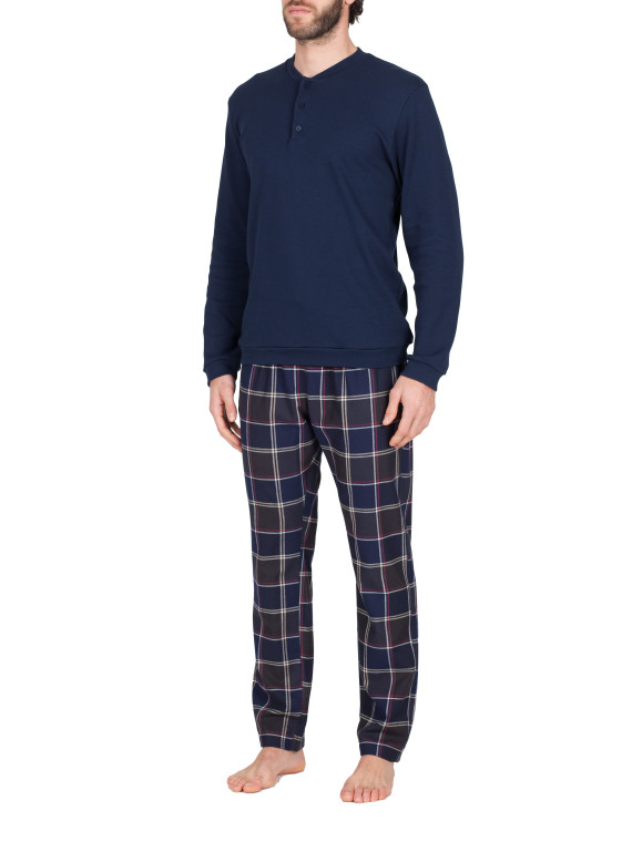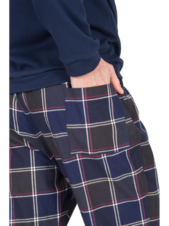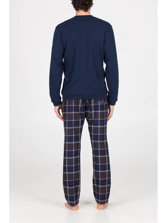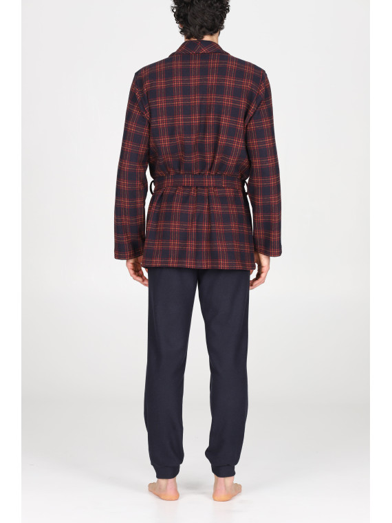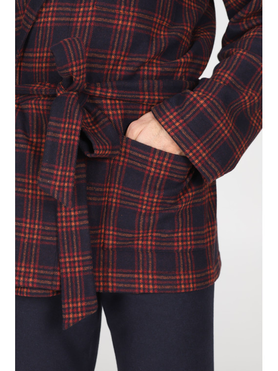 Julipet uomo JCL337 NARCAO Giacca da camera in confortevole jacquard scozzese blu