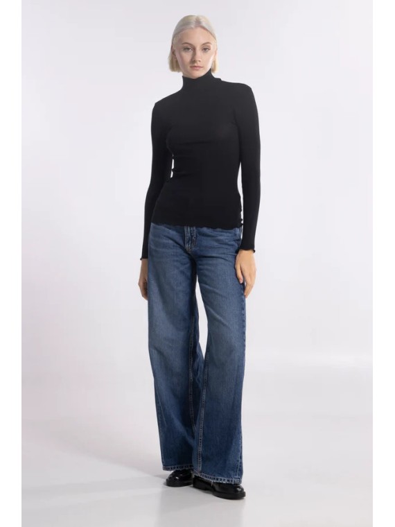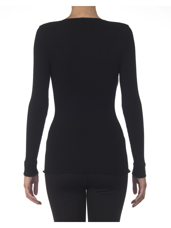 Oscalito donna art.7494 Maglia a maniche lunghe con collo alto in lana ajouré e seta