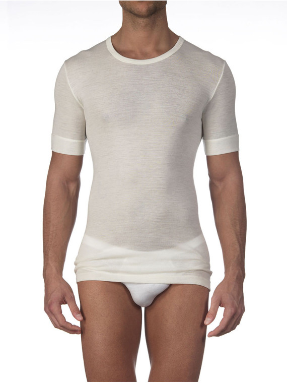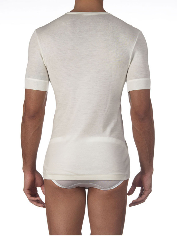 Maglietta girocollo aderente 70% Lana vergine 30% Seta...