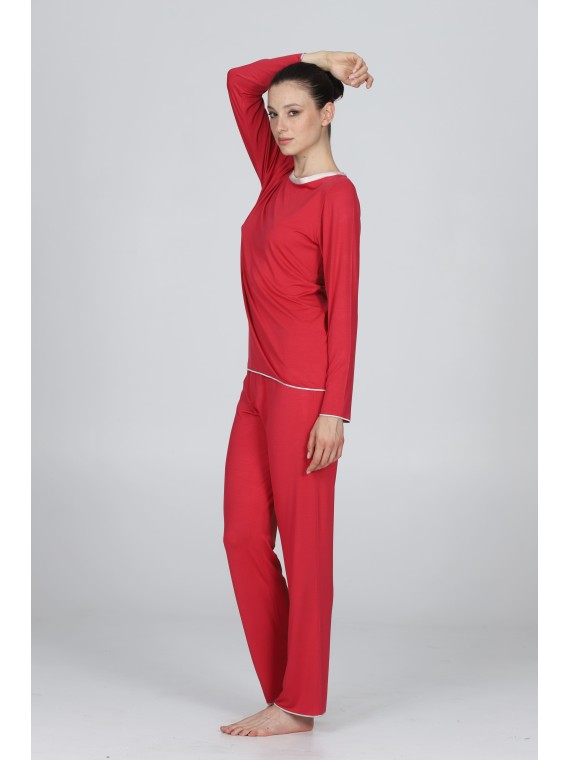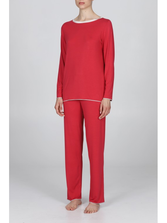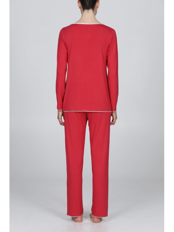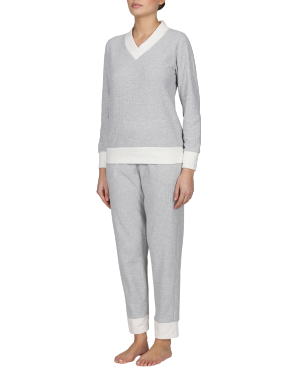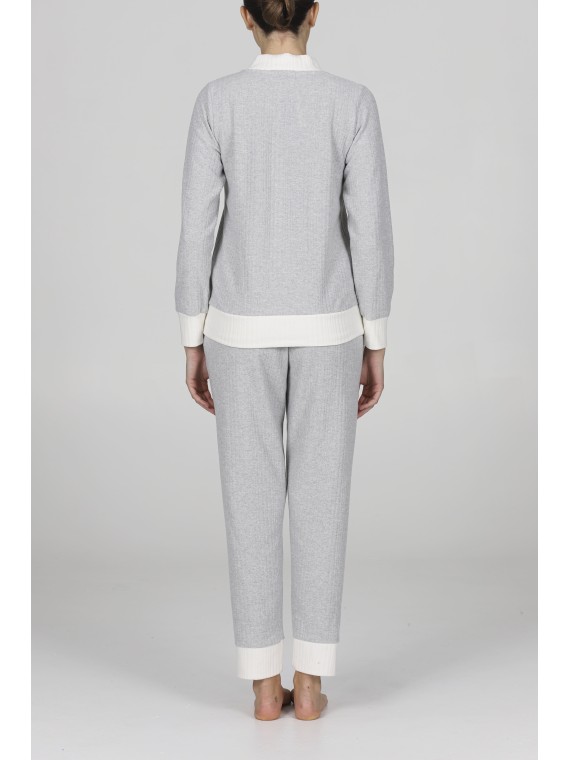 SCOLLO A V BORDO COLLO E POLSINI A CONTRASTO TESSUTO...