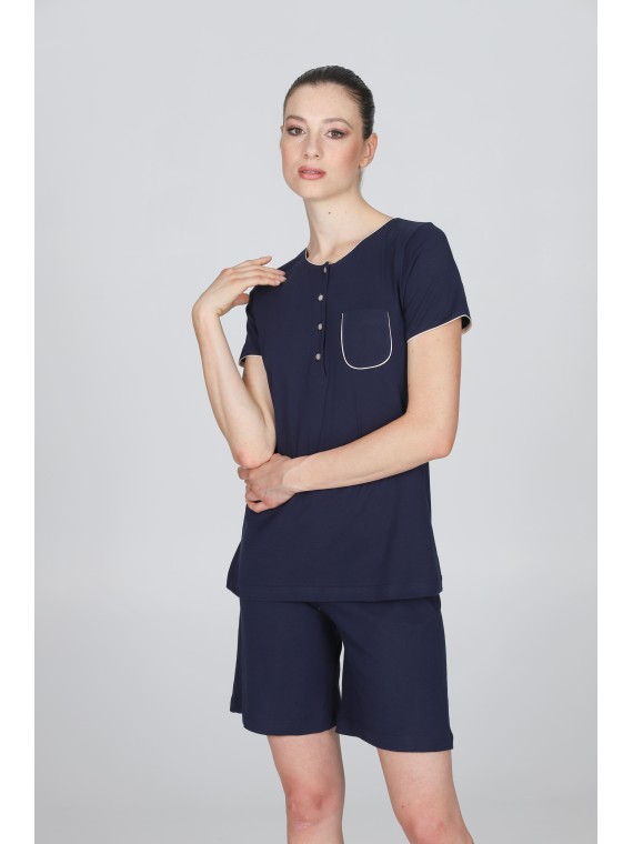 Boglietti ROSSANA Pigiama Corto serafino tinta unita in Puro Cotone