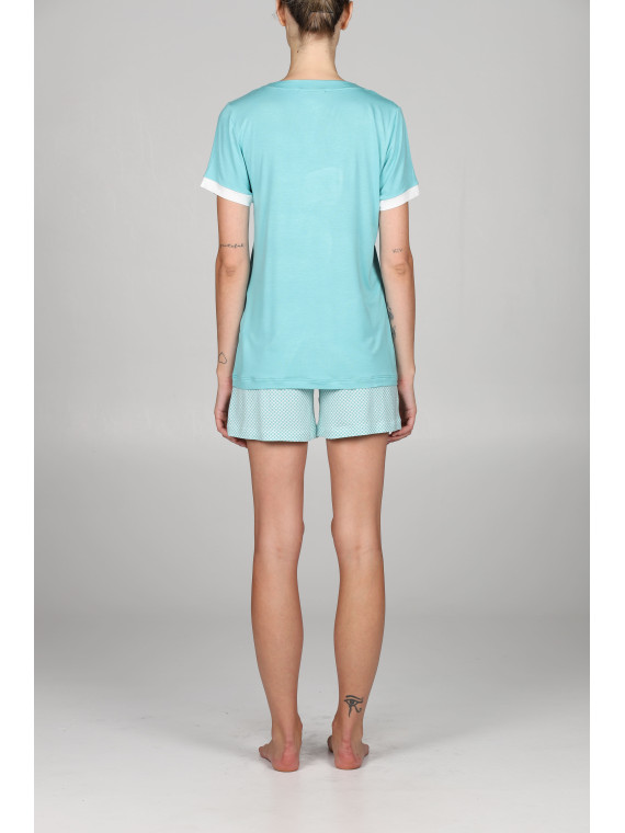Pigiama girocollo in puro cotone. Maglia con stampa Pantaloncini