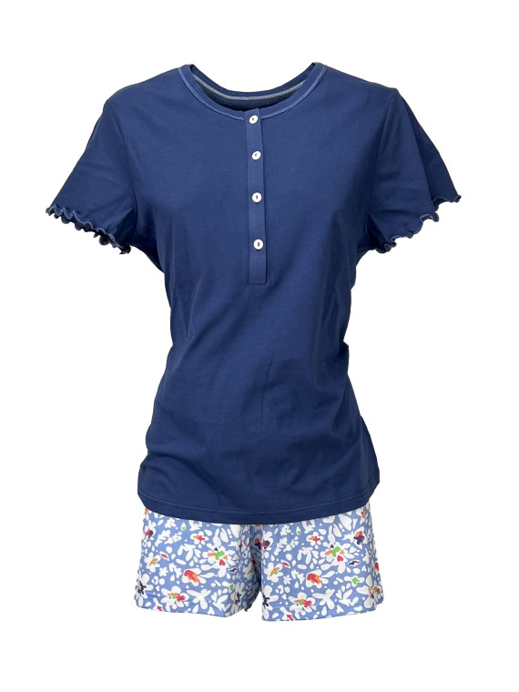 Pigiama corto in Puro Cotone . Maglia con collo a serafino in...