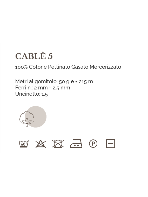 Sesia Cablé 5 BIO Gomitolo da 50gr 215mt Ferri 2-2,5 Uncinetto 1,25 100% Cotone Biologico