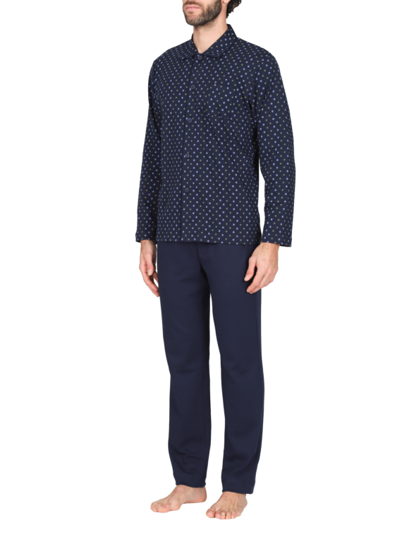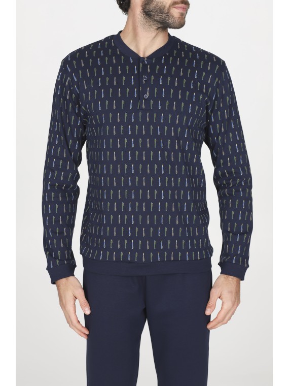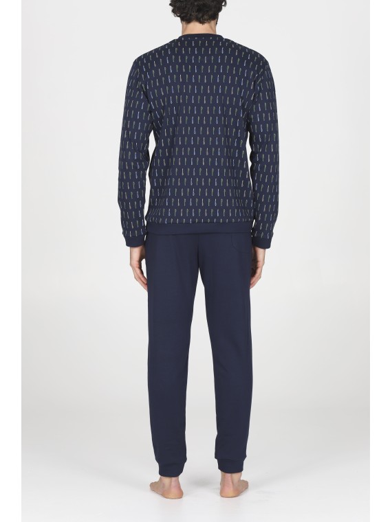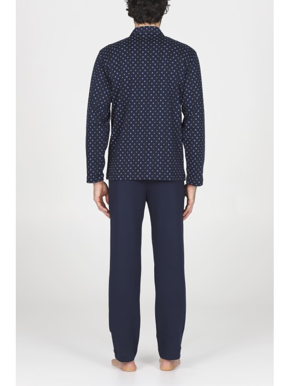 MAGLIA SERAFINO IN FANTASIA DISEGNO CRAVATTA BLU PANTALONI IN...