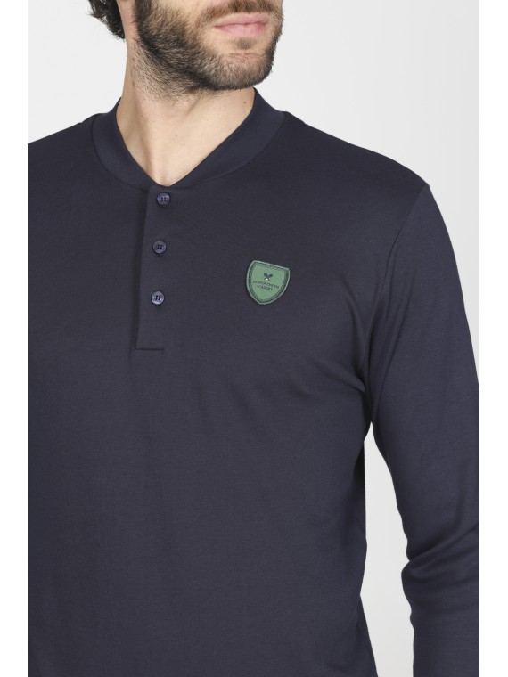 MAGLIA SERAFINO IN TINTA UNITA BLU DETTAGLIO STEMMA " Us...