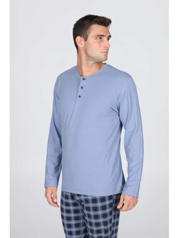 MAGLIA SERAFINO IN JERSEY DI PURO COTONE COLORE BLUETTE CON...