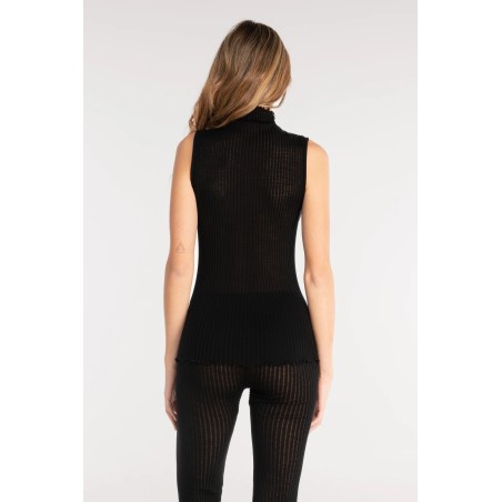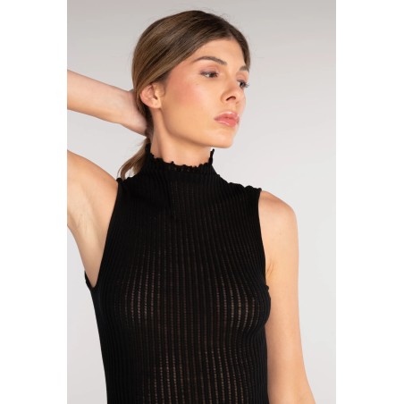 Oscalito donna art.7492 Top senza maniche con collo alto in lana ajouré e seta