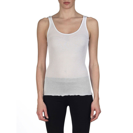 Lo scollo è rotondo ed il tessuto estremamente morbido e fresco: una canotta passepartout da indossare ogni giorno con qualsiasi outfit, sia con un paio di jeans che con un abito elegante.