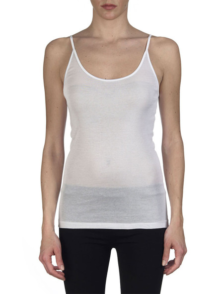Lo scollo è rotondo ed alla moda, il tessuto estremamente morbido e fresco: una canotta passepartout da indossare ogni giorno con qualsiasi outfit, sia con un paio di jeans che con un abito elegante.