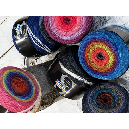 L'effetto sfumato di questo filato è stato appositamente studiato per avere all'inizio e alla fine del gomitolo lo stesso colore così da dare continuità di tono al cambio gomitolo.