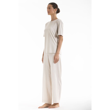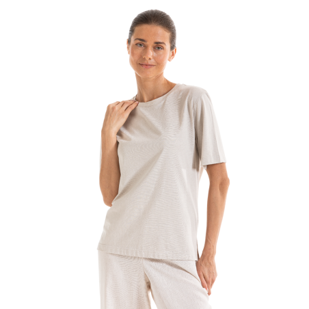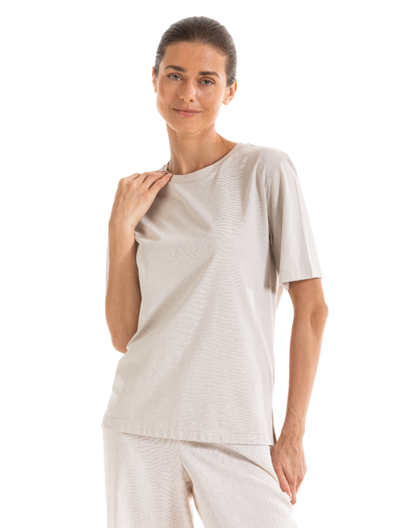 Maglietta donna in jersey di cotone e bamboo dalla mano setosa e soffice. Modello girocollo con maniche corte in stile minimal e dalla vestibilità morbida ed elegante. Ideale come base imprescindibile per la creazione di infiniti outfit. Femminilità raffinata a marchio Boglietti.