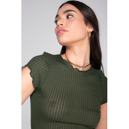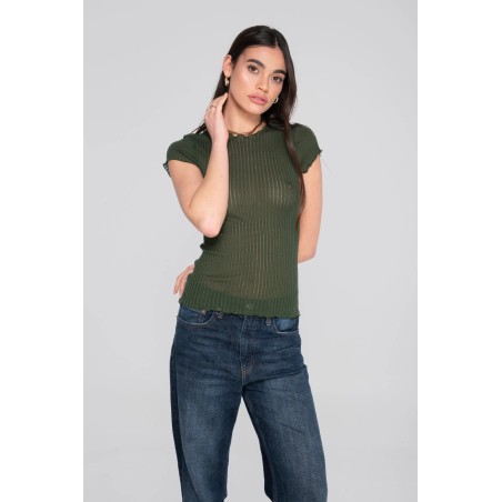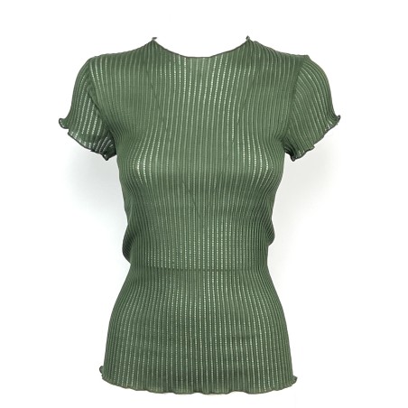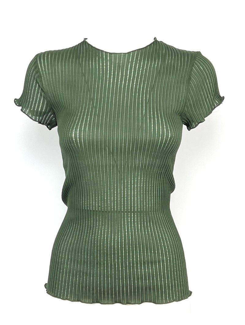 Maglietta a maniche corte realizzato in un delicato tessuto a coste ajouré in puro cotone mercerizzato egiziano Makò (Filoscozia®), che avvolge il corpo e si distingue per il suo particolare e prezioso effetto trasparente. Best-seller della stagione Primavera-Estate: questo capo è elegante, alla moda e casual allo stesso tempo, perfetto per ogni occasione. Costruzione senza cuciture laterali per garantire una morbidezza sulla pelle e la massima comodità.