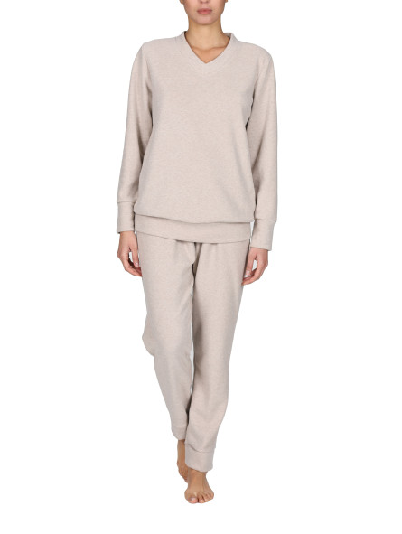 Pigiama donna in punto milano garzato: caldo e confortevole, adatto alla notte e al vestire in casa. Modello lungo con bordi, collo a V, in raffinata tinta unita. Praticità ed eleganza a marchio Boglietti.