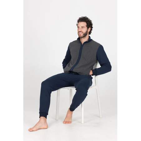 Tuta uomo in felpa di cotone di altissima qualità: caldo e morbida, è perfetta per ogni momento del tempo libero sia entro che fuori le mura di casa. Modello con chiusura a zip e polsini elasticizzati