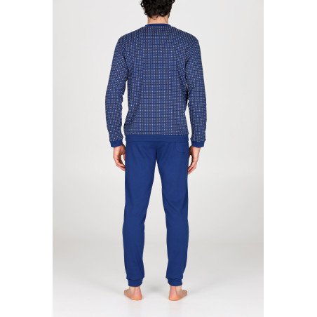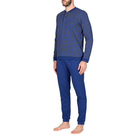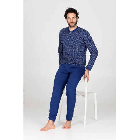 · Pigiama lungo uomo, in interlock 30/1 di puro cotone. Morbido, caldo e naturale è adatto alle stagioni più fredde per un massimo comfort. Maglia a serafino in fantasia e pantaloni in tinta unita.