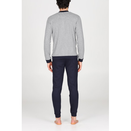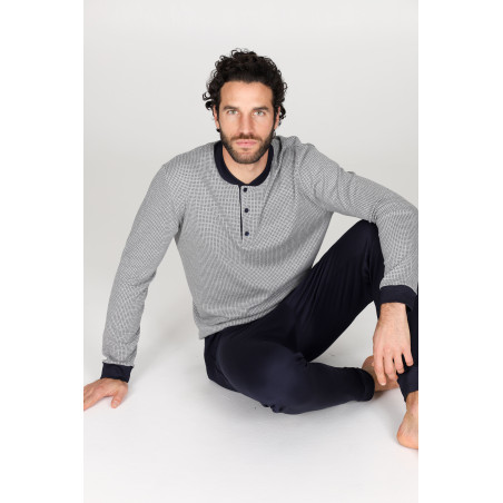 Pigiama con polsini uomo, in morbido interlock 30/1 di micromodal e cotone, il mix in perfetto equilibrio: cotone fresco, resistente e modal super confortevole. Maglia a serafino in fantasia.Pantalone con taschino in tinta unita.