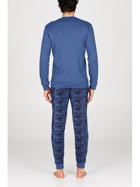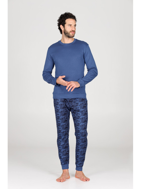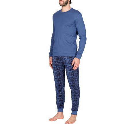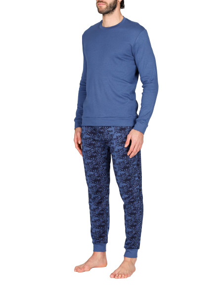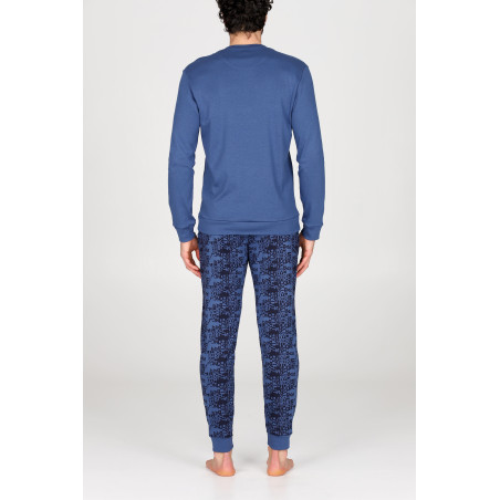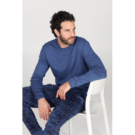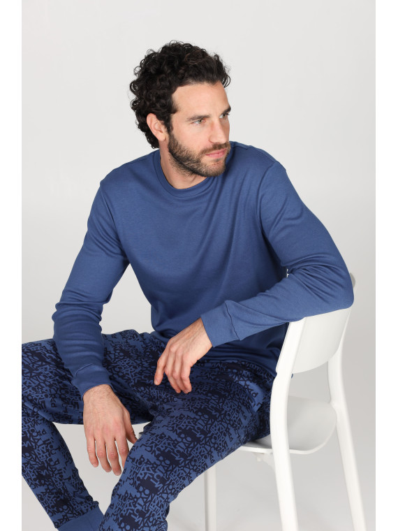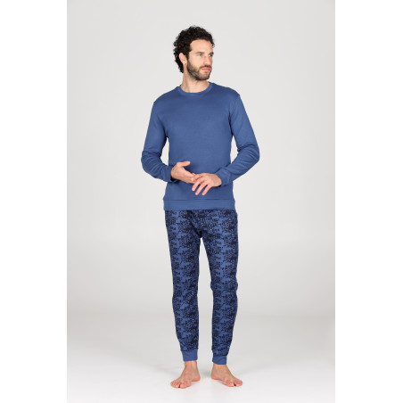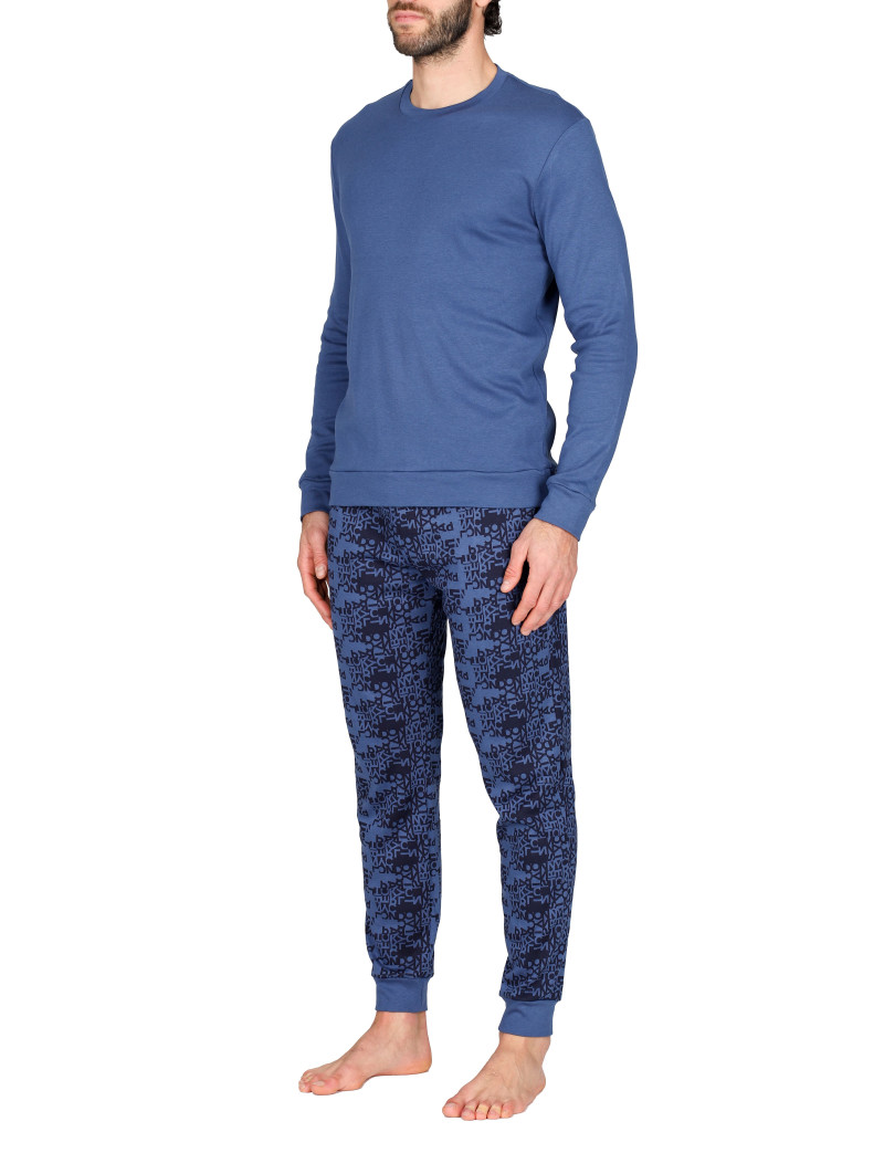 Tuta uomo in morbido interlock 30/1 di micromodal e cotone, il mix in perfetto equilibrio: cotone fresco, resistente e modal super confortevole. Maglia girocollo. Pantalone in fantasia, tasche sui fianchi e coulisse.