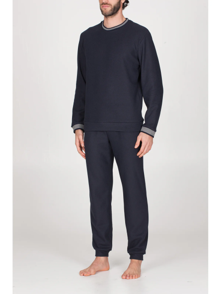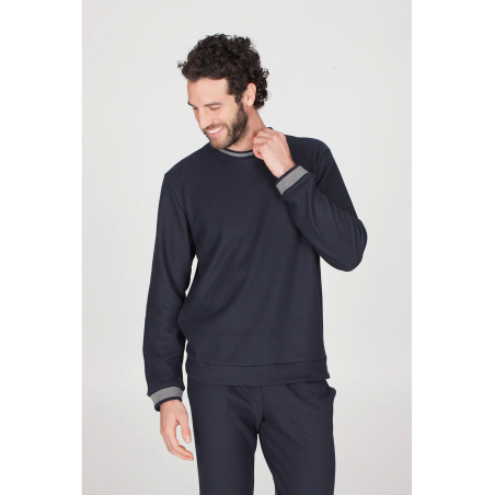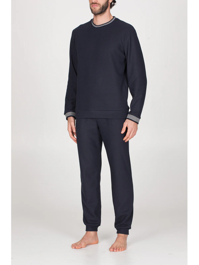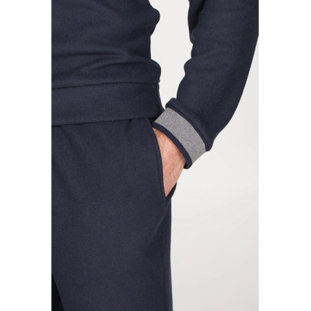 Tuta girocollo uomo, in caldo punto milano di jacquard EcoLife: morbido, elegante e pratico è un tessuto estremamente confortevole per il relax dentro e fuori casa. Maglia in tinta unita e dettagli a contrasto. Per realizzare i nostri Jacquard abbiamo scelto tessuti Ecosostenibili: a basso impatto ambientale, come l'utilizzo di energie rinnovabili e il riciclo dell'acqua. Un'alternativa per un futuro più verde