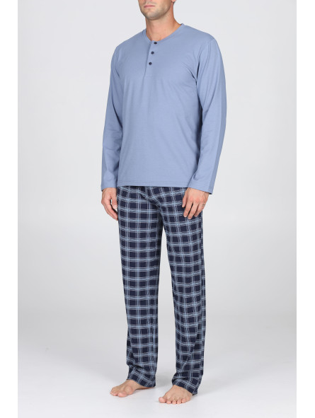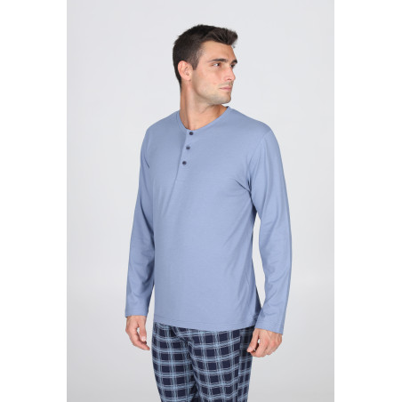 Julipet SANTIAGO Pigiama serafino, disegno scozzese in traspirante jersey di puro cotone