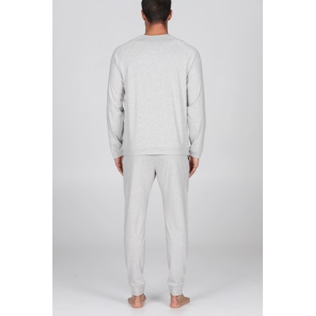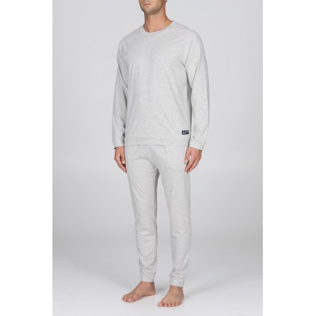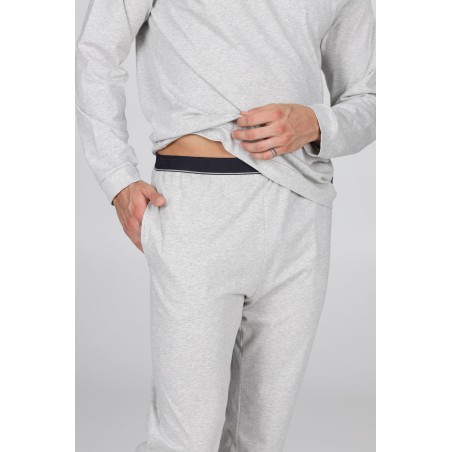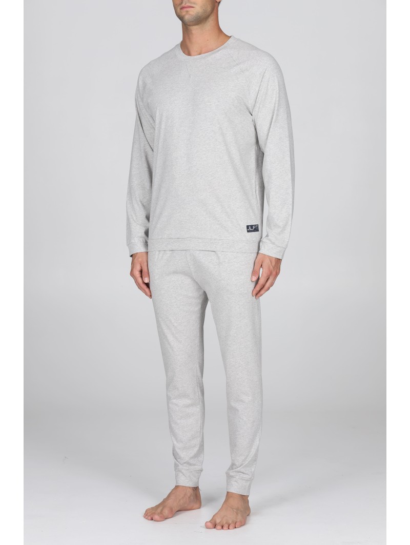 Pigiama lungo girocollo modello tuta, in esclusivo jersey 36/1 di puro cotone s/z estremamente grigio melange: leggero, fluido e traspirante. Con polsini. Adatto alle stagioni più calde. Il filato presenta una doppia torsione denominata s/Zeta, che garantisce una straordinaria traspirabilità e freschezza. Oltre a evitare la torsione delle cuciture ai lavaggi