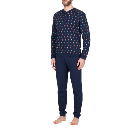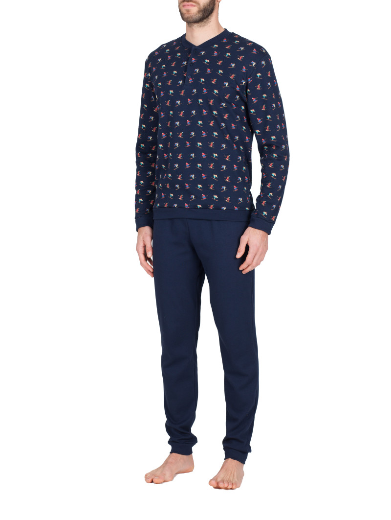 ·        Pigiama uomo serafino a 3 bottoni, in morbido e confortevole interlock di puro cotone stampa sciatori . Alta definizione dei disegni e colori vivaci. Comfort assicurato, tessuto dalla mano morbida, soffice e delicata.