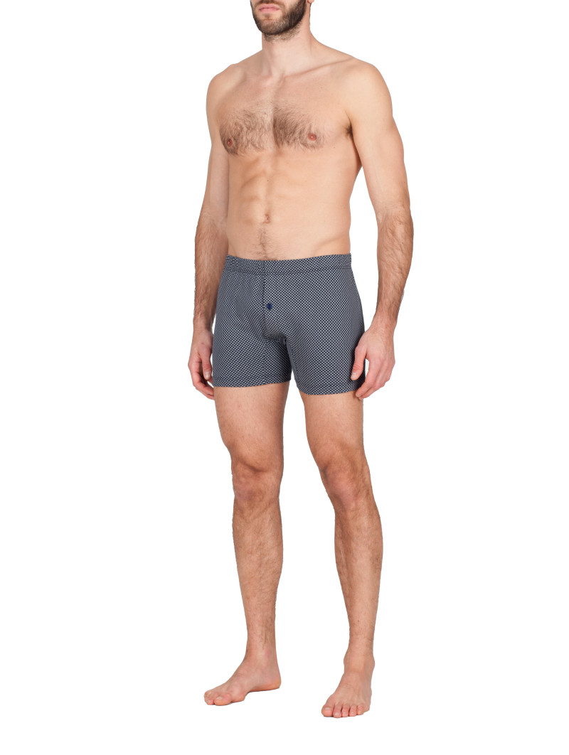 Boxer in doppio jersey di puro cotone leggero in fantasia, con stampe uguali alla pigiameria. Il tessuto è morbido ed estremamente piacevole al tatto, dall’impareggiabile comfort adatto a tutte le stagioni