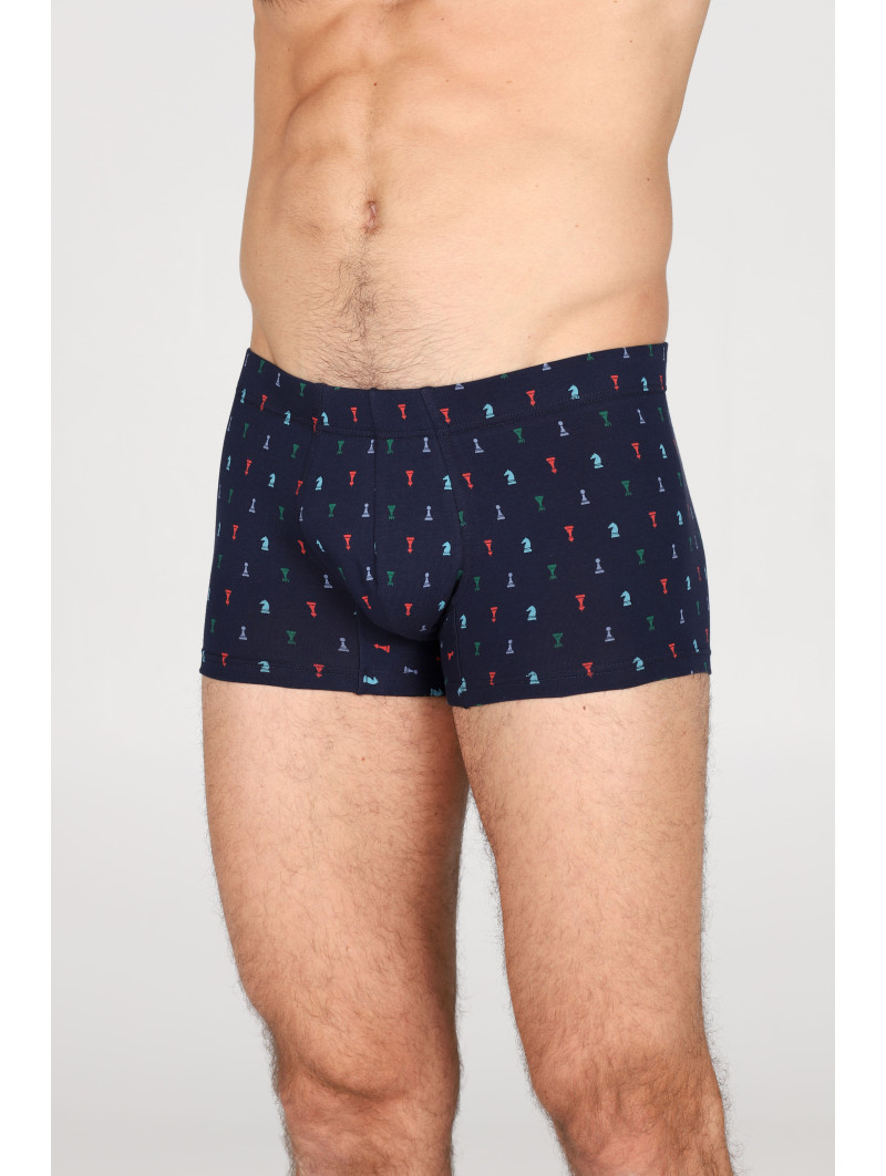 Boxer in jersey di cotone bielastico 60/1 stampato disegni "scacchi". Pannello posteriore senza cuciture, elastico coperto. Massimo comfort e dinamismo. Per chi è alla ricerca di un prodotto elasticizzato di qualità, moderno e con una bassa percentuale di elastan.